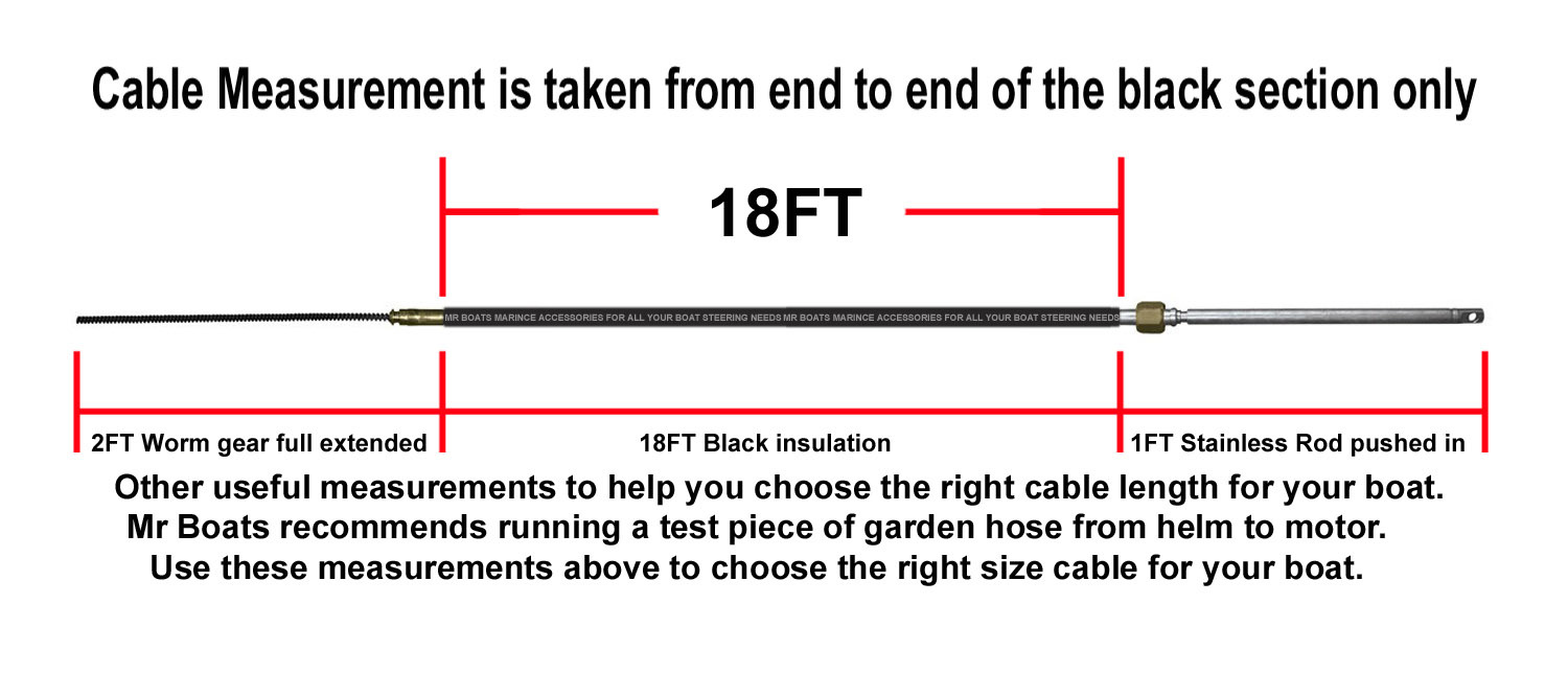 To measure the correct length cable for your boat, please use the measuring template attached in the photos. Do not use your existing cable length as all manufactures use different measuring points & technics. If for some reason you have made a mistake in measuring your cable and need to swap it over. We are happy to do this as long as the cable comes back to us in the same condition (No marks no grease in original packaging) as we sent it to you. Once getting the cable back we'll inspect it and resend the cable length you require. The customer has to pay for all freight costs, plus any different in cable costs.
