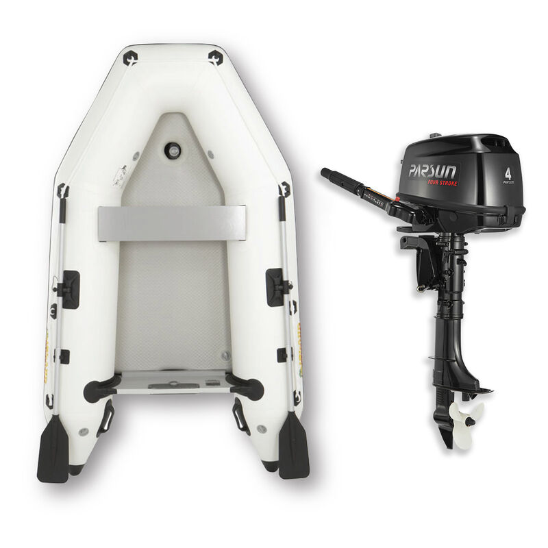 The 2.6m Island Inflatable Boat with AIR-Deck Floor, paired with the 4hp Parsun 4-stroke outboard motor, is the best Boat & Motor Package to use as a small tender for your cruiser/yacht up to 25-30ft. The Island 2.6m is also a perfect-size boat to take away on holidays, as its compact size and light weight make it convenient to pack away in the back of a car or caravan.