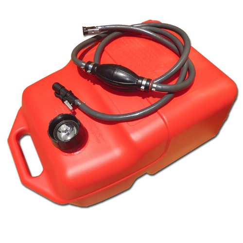 This 25 LT Outboard Fuel tank is made from Strong UV Stabilised Plastic (polyethylene). It's light wieght compact and has a convient carry handle. It's perfect for Medium to Large Boats, Fibreglass, Inflatables, Tinnies, Canoes and even Kayaks. This tank comes line a quick connect fuel line & primer bulb.