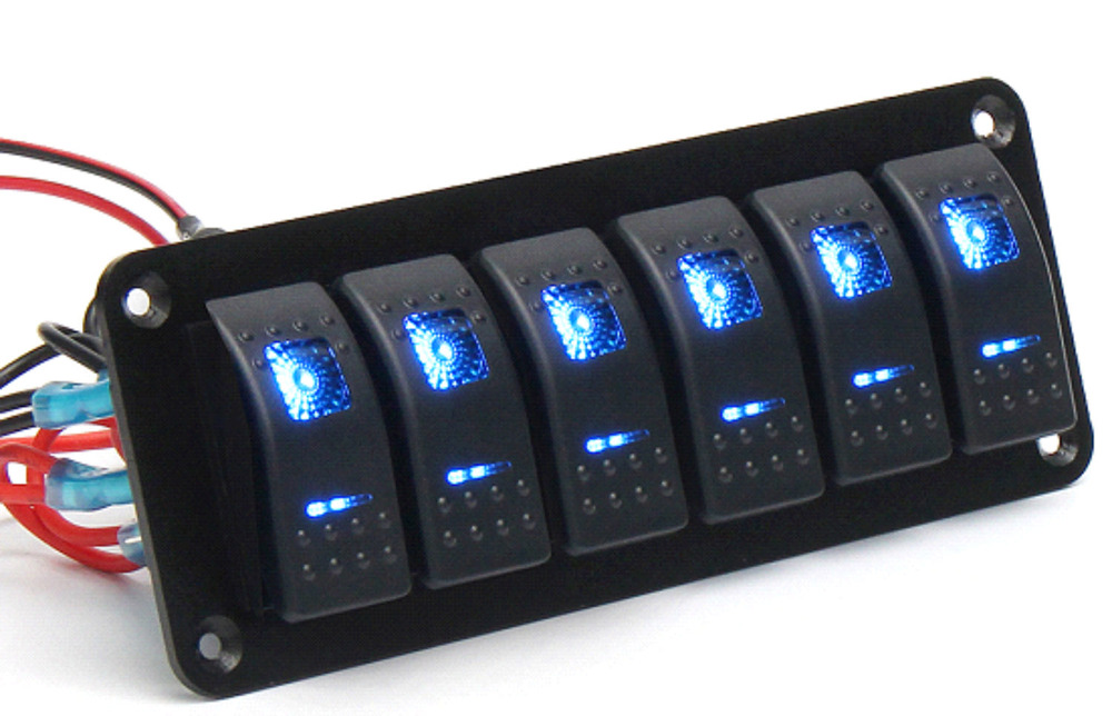 | Artist / Author | 6 Switch Panel BLUE Illumination Switches Marine Grade Splash Proof UV resistant 12-24 Volt 6 Toggle gang |