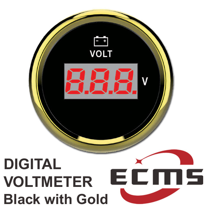 ECMS Digital Voltmeter 8-32V - Black & Gold - 2" 52MM 12V Volt Meter
