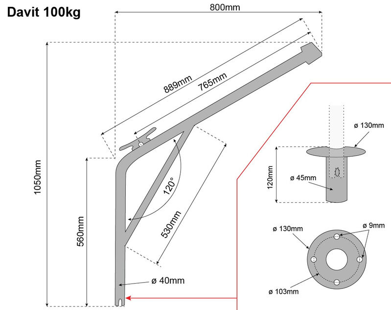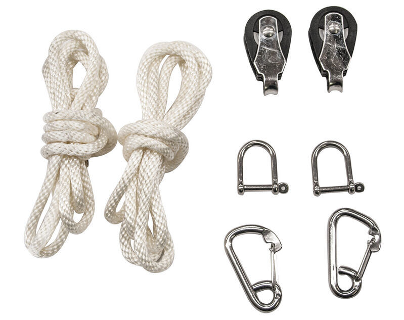 Easy to install, this kit is supplied as a pair of davits with recess mounting sockets, pulley blocks and nylon rope. The arms swivel around 360° and can be removed easily from the deck mount for storage, providing more space on the deck and transom when not in use.